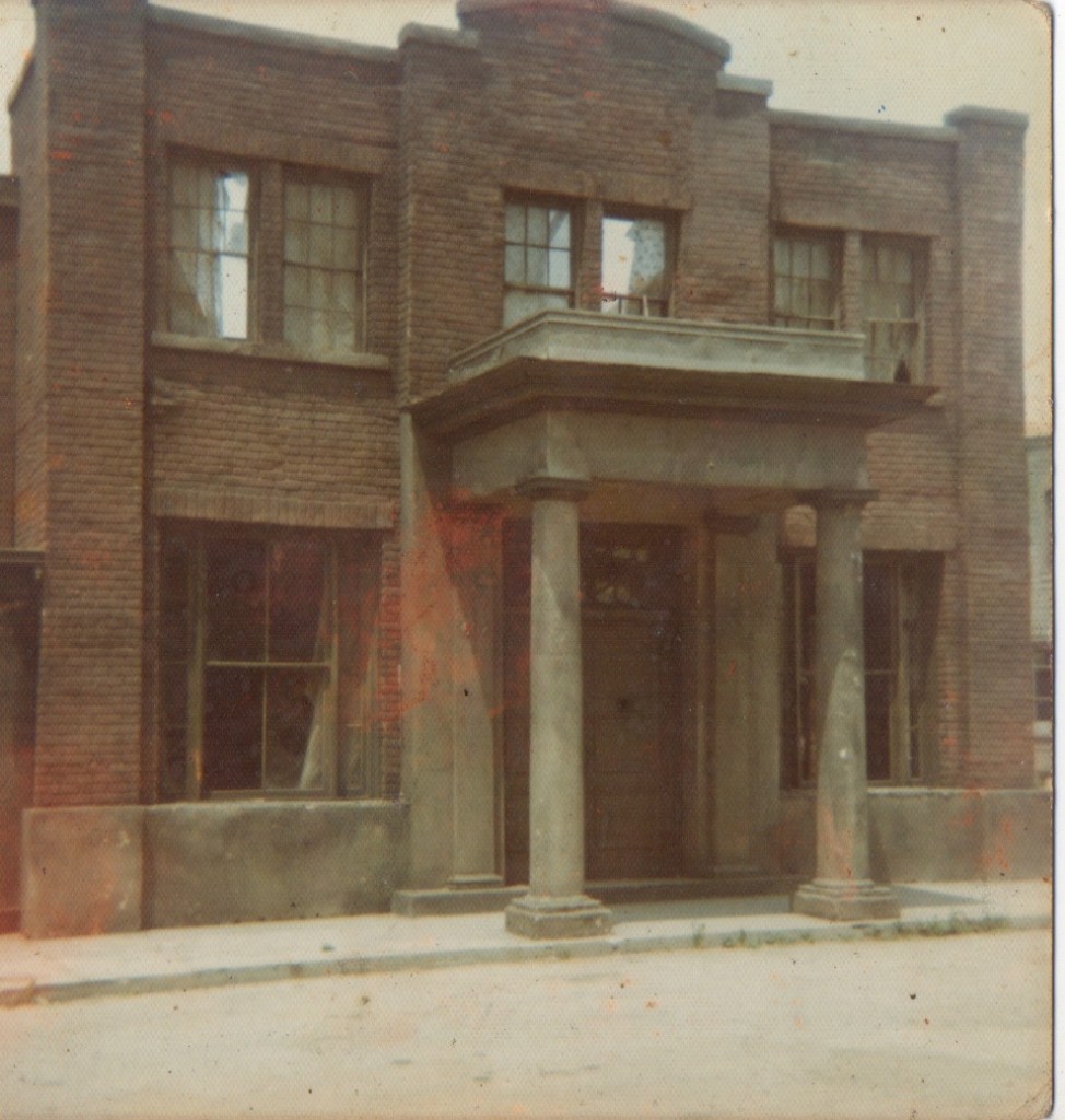 Pic left-balcony as on Hardy House but relocated for a set designed to block vision of other backlot sets.Heartland/Carvel about to be destroyedpictured right.
