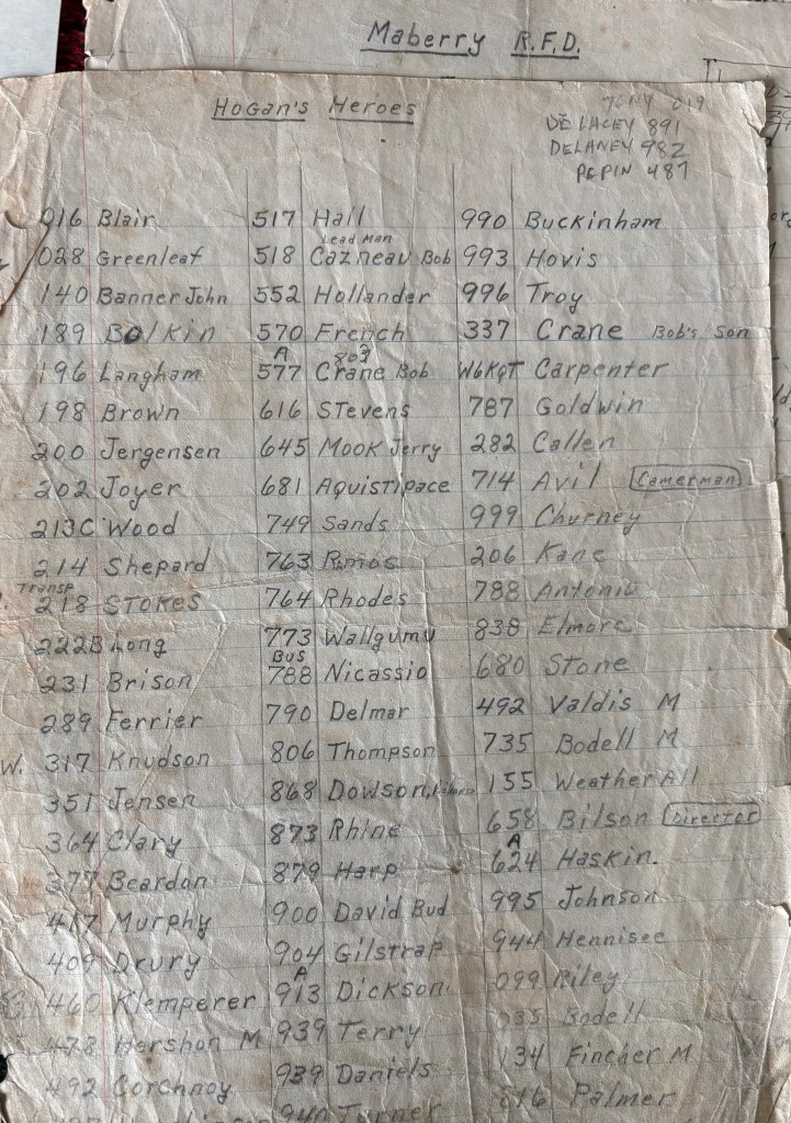 What is really neat is this paperwork was found where it was filmed, I became the Stalag 13 caretaker, that was my favorite set. But I also had a fort in Andy Griffith’s house at this time-1973