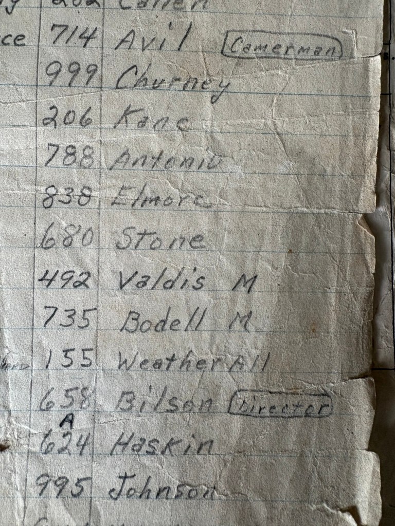 This list was found by myself inside a P.O.W barracks and lo and behold-Mr. Bruce Bilson happened to be directing it.