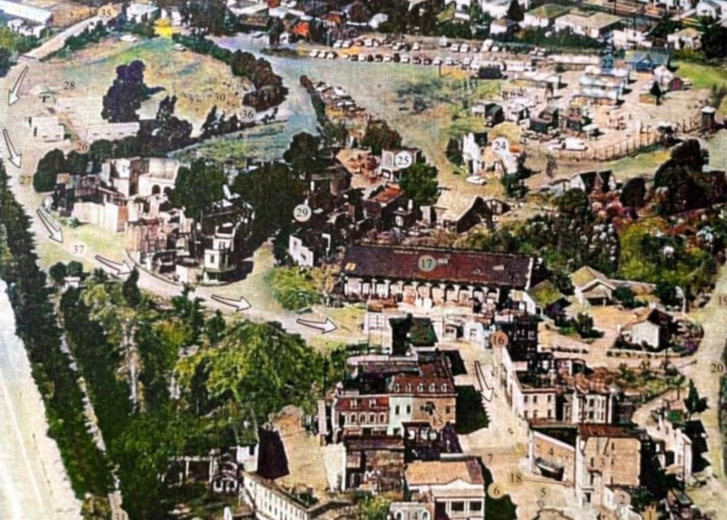 The Desilu Studio Backlot, where Television Stars and Directors became legends. Let’s revisit this Backlot Ranch known as 40 Acres as we reflect on the passing of a Hollywood Great-Mr. Bruce Bilson. He just may be in this picture as Hogan;s Heroes was in production when this as taken. Look closely at Stalag 13…