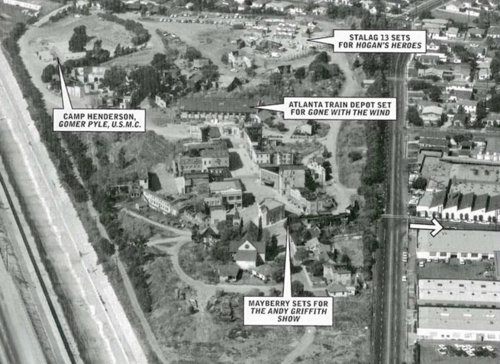 More history on this part of Desilu than you can imagine. Gone With the Wind, King Kong proceeded Stalag 13 standing for 10 years…1964-1974. This site also ties to the first ever movie compound on Lucerne Ave.