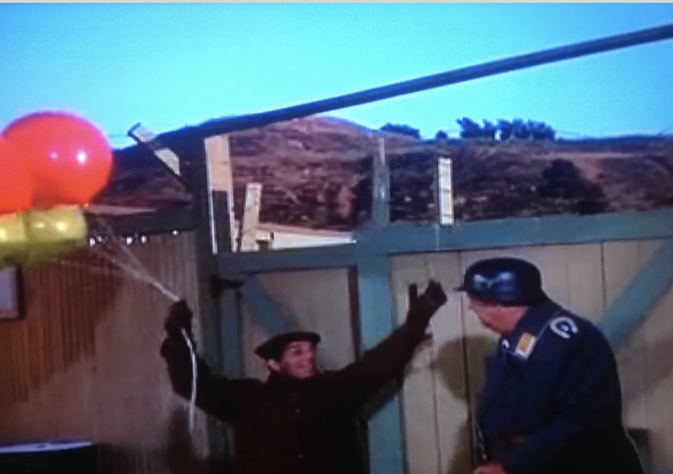 Clues were everywhere, signs on buildings referred to business’s in Mayberry, ammo boxes were stored in the Stalag Barracks-both in English and German. We decorated our forts with those. Plaster white snow surrounded the Stalag and some slabs- full of spider webs- found there way into my hide outs. I had four forts…The Taylor Home, until it burned down, The Mayberry R.F.D Home, we turned that farm upside down, the parties we had upstairs at that set. I had a saloon fort that for awhile had a rolling phone that called both on and off the studio backlot, and one in the Cantina that also burned down when Goober’s Gas Station went up in flames.