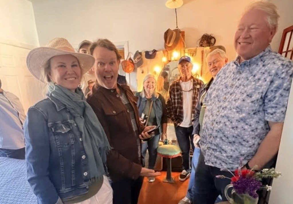 Pictured here is The Mayberry Group that connected Bruce Bilson with my book. Dixie Griffith, Andy’s real life daughter, wearing the Cowgirl Hat.The lit mirror you see is from Desilu, last used in Hogan’s Heroes and first used by….Marion Davies.