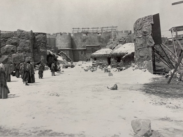Desilu has a snow set, Stalag 13. Plaster slabs lay out beyond the camp, never melting or even being touched, for the entire length of that TV series.