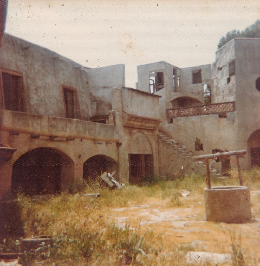 It’s nighttime on the old backlot and that means it’s pitch dark back here. Our fort only requires us to exit the creek. We then climb a slope like Batman and Robin do in those cheesy scenes. They tug on a rope and talk to cameo stars who open their windows to honor the caped crusaders. It looks like that until we get to the top, which is the backlot property line. Run across a simple dirt road. Cut through a stable full of hay. You’re inside a Cantina style courtyard. An exterior staircase leads you into a space you can occupy. We have decorated it with props we’ve found all around the lot. All forts are a work in progress, we add stuff all the time.