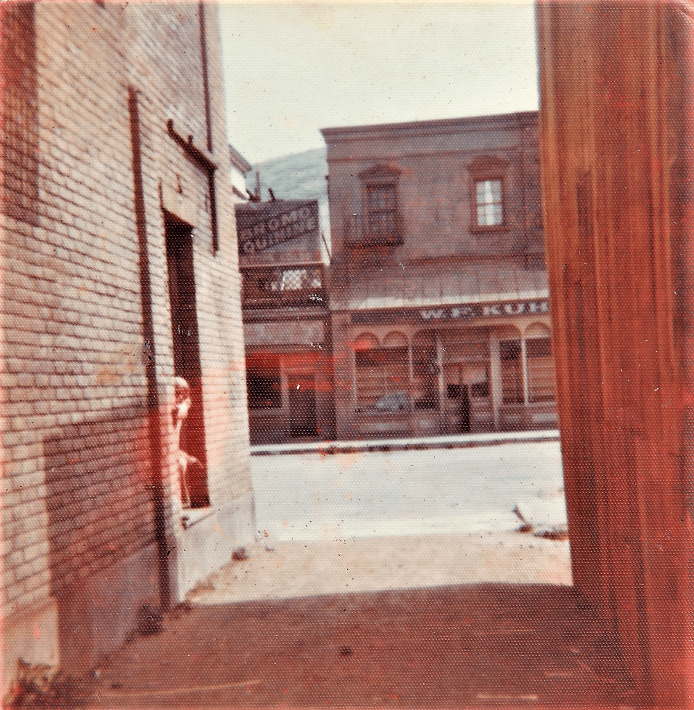 Some really bad guy must be in here, and bad stuff’s happening all around Mayberry. We feel invincible, we realize it’s someone else being hunted, possibly killed, and we want to watch. We recently experienced huge gun battles on this very street during the movie Capone. This isn’t our first powder keg rodeo. We advance from our fort to the Hogan’s Heroes bridge set. We reach our next observation point. After a small pause, a hail of gunfire resumes. The suspect must still be alive.