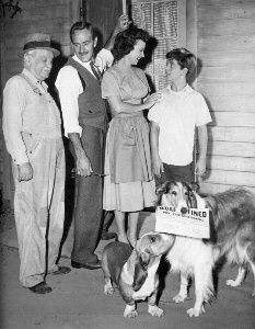 Wait, there’s more…As we pull back from lot 2 past my dad’s- 57 Chevy, he has a dog clutched. My father’s name is Don, but the dog is the star. The four legged one is in a TV series, so take a close look at the dog. It’s a star in a series in this 1961 photo. You’re an expert if you can I.D. this dog to its series. I met another K-9 star at that same driveway. Frank Inn stopped by from LAX airport on a trip back from Paris, France. Glen, his assistant called me over to meet Frank and Benji.