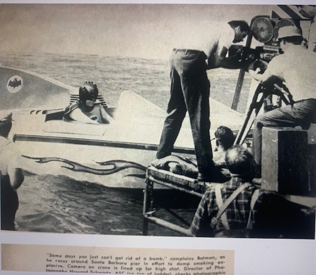 Two-episodes a week, it’s that good!Donnie 1966,June 13 Batman’s biggest fan 1966-As I blow out six candles on my Birthday cake, notice my T-shirt, I never took it off. The front is Batman. His wings are spread and his name is transposed inside the cape. My best friend Jimmy sits next to me. My mom serves a cake she baked, iced with Bat Frosting, it’s a Batcake…yummy, let’s eat!!Probably unable to make my party due to filming a feature, here is Batman at work in the MGM Lot 3 water tank. Batman at its peak was needed on the big screen, as were The Munsters. Fans of these series may not realize their heroes broke out beyond their TV screens. You could enjoy them in theaters unlike anything you ever saw. Bat gadgetry hits another level.Those clouds won’t move, they’re painted on the iconic backdrop at MGM lot 3. This same tank kicked off its film history with Ben-Hur 1924. Scenic artists are who control the sky backings and weather opticals.This is a sequence that was partially done on location in Santa Barbara. Full scale effects easily take place here, easier than the ocean, anyway…this is the famous MGM watertank/backdrop.Santa Barbara Pier...What you don’t see in the movie, this angle...