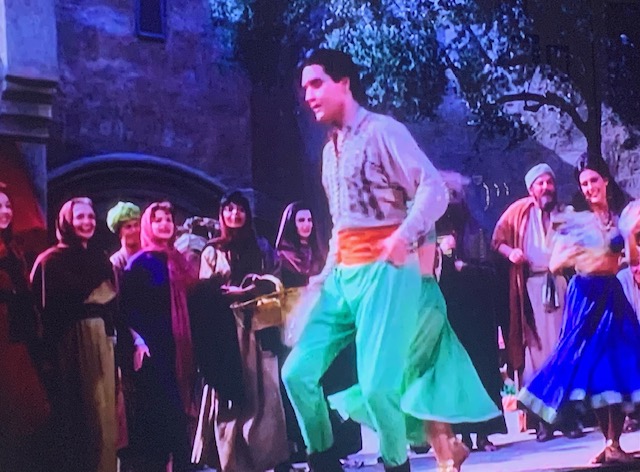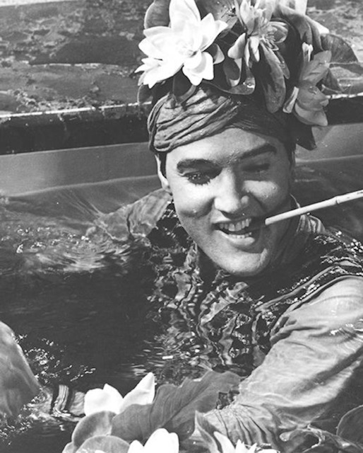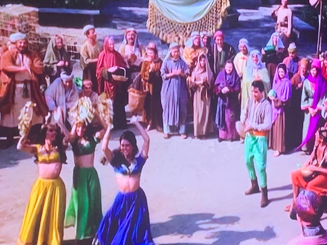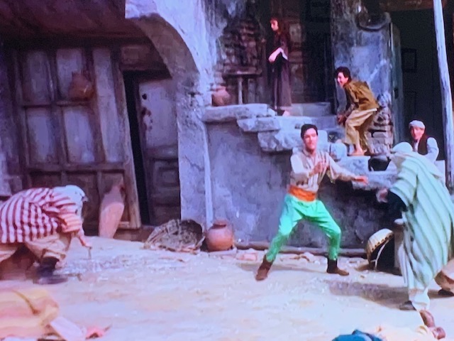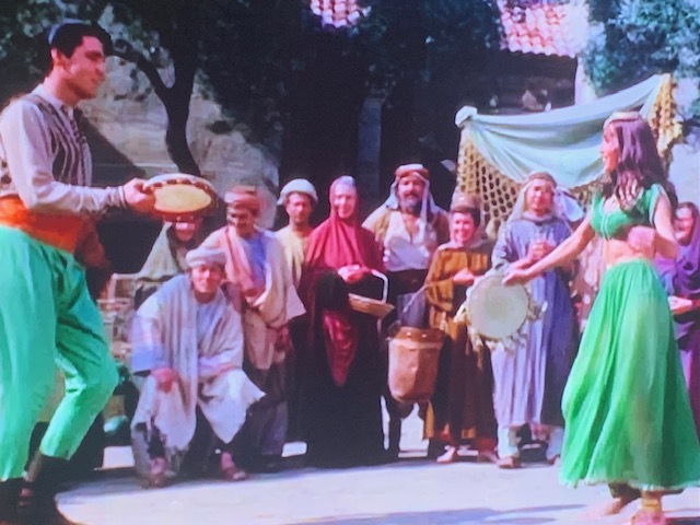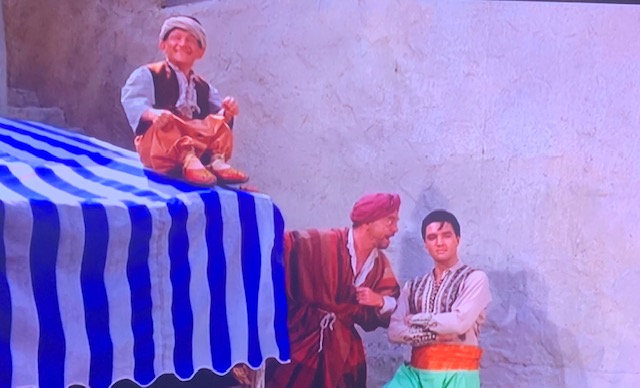 I’m guessing this Harum Scarum set had a lot of visitors wanting to see a piece of the legend called- The King. He did not let anyone down. He danced about in this tiny village on a backlot known more for horse rustling than dancing…