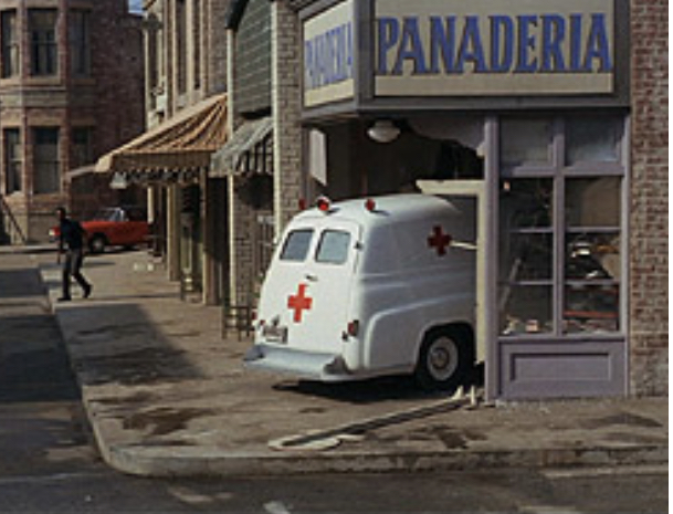Sgt. Carter and Gomer running through the intersection, chasing after the Sarge’s car.