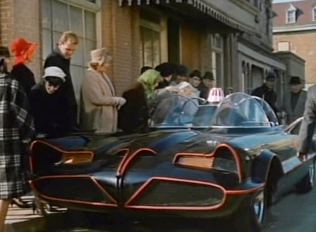 Batman, parked across from the Mayberry Courthouse, in front of the Mayberry post office, he must be mailing a letter…
