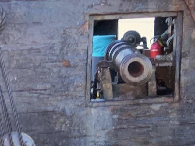 At sea… the voyage begins at a berth in San Pedro, California. An hour away from Universal. I have a thing for Pirates, how can you not. The last Pirate Ship I was on was at Sony for the movie Hook. It would sit in the water tank on stage, but was not built to sail. Just to be admired, inside and out, this was a Pirate Museum. Gold bars were stacked aboard. “gold painted wood blocks.”
