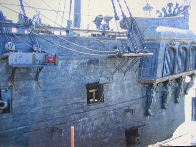 Pirates 1-2-and 3 were done at the backlot that has those Glamour Trams cruising around. Tourists could see this set get rigged from a distance, and very few details were given out due to a family feud between these two studios. We don’t promote them nor do they promote Universal. Never mention the D -word while on our lot as a tour guide. That applies for the other Disney set yonder called Desperate . Housewives.