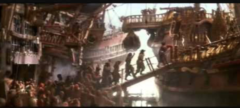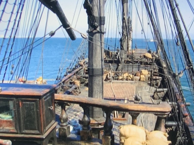 Things I’ll never forget is the cannon sequences when every hatched door opened with a powerful cannon blast, one after another. As real as it gets. The making of this movie and all the mechanical challenges, combined with sensation make up and costumes, is better than the movie itself. For added effect, fog guns laid a blanket on the sea that wind machines could push around. It helps provide contrast on a dark sea lane.