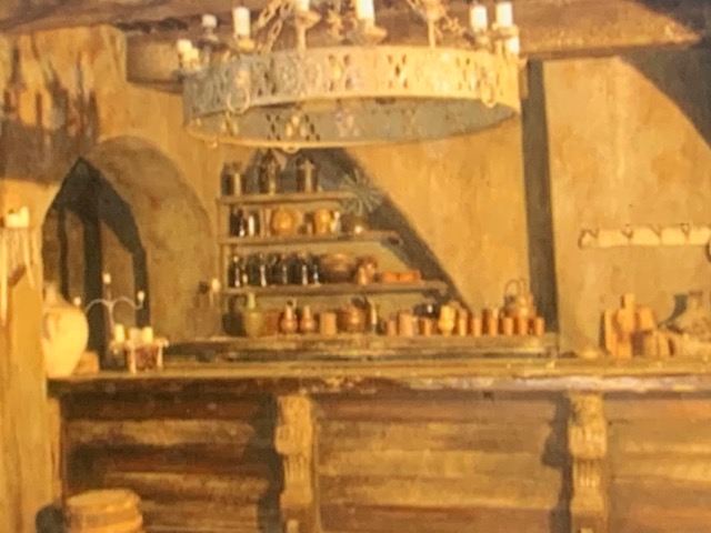 As fast as it was put up, it came down. The bar was built in the courtyard of an already existing set, so hardly any materials were used. The bar itself was destroyed; I salvaged the Lion Heads that were headed to the dumpster. They lined the bar and are plaster. You can see them in my bar picture, just below the counter.