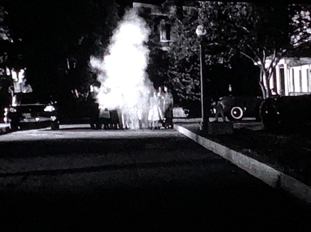Call the street what you wish, but when best friend Jimmy and I first stepped foot on it, we named it after the Twilight Zone episode, Maple Street. That’s what we called it. We synergized it when we snuck in a tiny black and white TV with partially broken rabbit ears and watched this episode where it was filmed, here on Maple Street. TV’s and backlots work as time machines. Eventually you have two pictures, the original on television, and the one presently in living color, with living potential hazards.