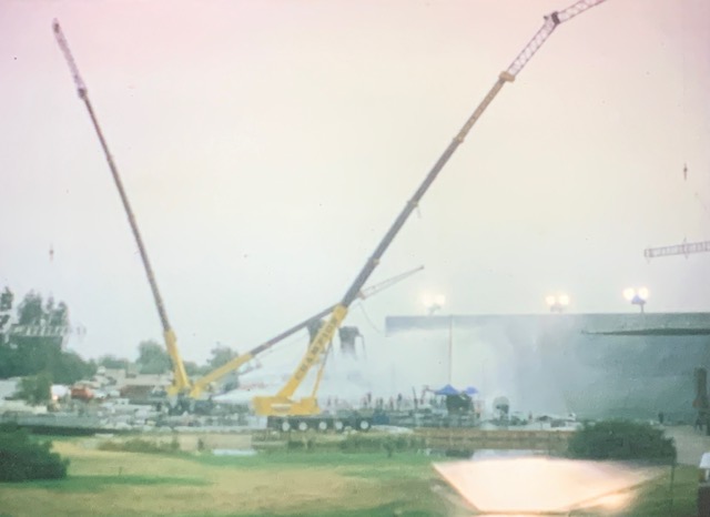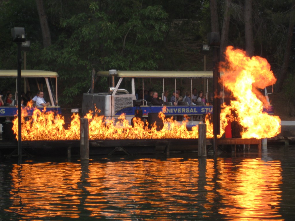 This was the first set I ever witnessed jet engines create wind effects. The electrical department (40 shop) handles Ritter Fans that require DC power to operate. We also power the wave makers; those are used to create a choppy water surface rather than a calm pond you could skip pebbles on. But Special Effects operate gasoline blowing devices including the jet engines used on this shoot. The sound created is like a jet plane taking off. Hearing protection only goes so far, no sound is recorded when under these conditions.
