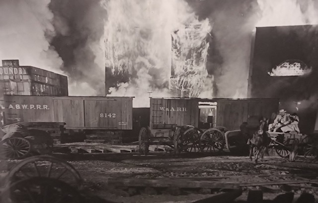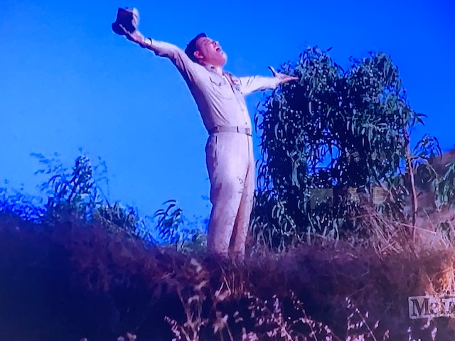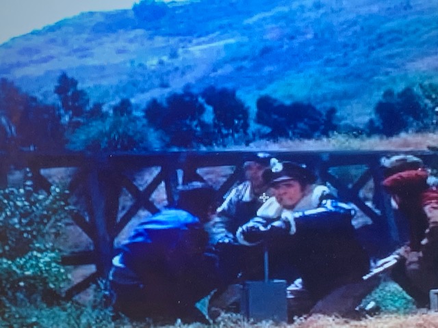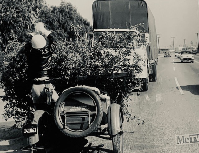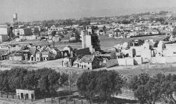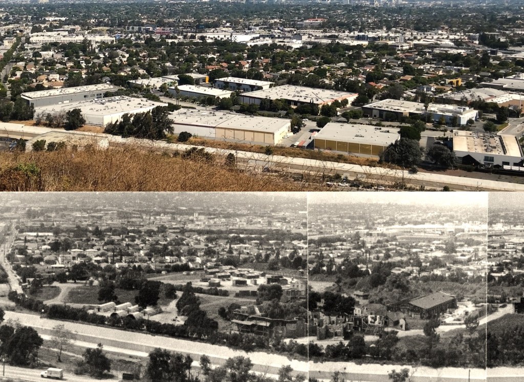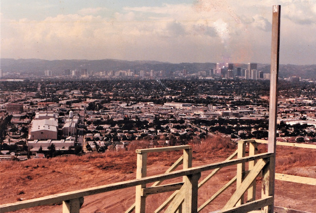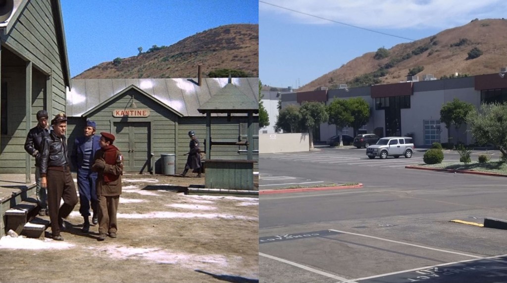 Once upon a time... A hill overlooked a movie studio, like a balcony in an Opera House.December 11, 1916. Culver City was not incorporated yet. But Heinz 57 Pickles were thriving. This hilltop reflects the setting that lured Thomas Ince to build a studio here. The 57 was lit up at night. That’s a light standard in between the five and seven.Sgt. Carter often visits this area, so he can BLOW HIS TOP!When filling up at Goober’s Gas Station, this hilltop is what you see. Pumps just out of frame on the left. The creek is behind these trees.1976-right before the 40 acres backlot is no more. Looking toward the hilltop from another hilltop, on the Desilu lot next to Stalag 13. A road separates the studio from this hilltop. You can see Jefferson Blvd. in this photo of mine. Barney ticketed this Highway in his side car mounted Motorcycle. Just looking for speeders is all. ” If you give them an extra 5 miles an hour then they’ll want 10″ The studio man-made hills is the area in left hand side. Hogan’s Heroes has its Bridge located here. That is the hill Sgt. Carter drives his jeep to…to escape Pyle. This area was catering and all the tables and crew for GWTW fed here. The bridge was not built yet and these two small studio hills are man-made. But this rooftop I’m on top of existed going all the way back to 1927. King of Kings set, Cecil B. DeMille. Scarlett O’Hara in line for lunch, lower corner standing. Boxcar 8142, upper left, along with the mangled one just right of it was used in the fire sequence in the Burning of Atlanta. Boxcar 8142 (left) and the one on the right which is filled with explosives.It’s been blown up a few times…Once again, you can watch all this safe and sanely from our hilltop. You’re not trespassing when on the big hill. That’s Baldwin Hills-not Desilu. This is the exact area GWTW lunch was served.Notice a structure on top of the big hill. Howard Hughes is in charge of this mountain top. The Hughes Tool Company has a research and development project at the summit. “HELP ME!”Waiting for LeBeau and balloons. I have the scene script involving this moment. The trees at the very top of this picture sit inside a fenced and secured area inside this Hughes Tool Company Compound.Waiting for LeBeau and Balloons….Periscope up…The studio paved paradise and put up a parking lot. That S.U.V. is parked where Klink’s office once was. It’s summer in the picture from Hogan’s Heroes, the brown hillside is dried out. It turns green for much of the year. The white snow is all fake, paint on the roof, and powder on the ground.Duke-keeping tabs on the race between Gomer and Yellow Bear. Carter put all his money on Yellow Bear to win. But, against all odds, Gomer pulled out the win. The Little League Field sits on the hill above Sgt. Carter’s cap. That’s home plate!This factory can be seen in several TV shows and films. A legendary laundry cleaners used by the studios. J.B. French sits one building south of this. Sadly, it went out of business after decades of service at this spot.A dedicated crew hard at work.This facility sits directly across the street and clearly into the backlot with the town church looking directly down upon it. James MacArthur, Chuck Connors, and Claude Akins star in Ride Beyond Vengeance. This 1966 film shared our favorite TV Land backlot. Bernard McEveety directed this fun adventure. The French laundry is the building distant behind the Bar and Grill. Where Mayberry gets things dry-cleaned. These sets date back to GWTW.As of 7/5/22-Building remodeled and painted black. Across the street from Mayberry.J.B. French sits…Out of Business.“Slow it down”- The J.B. French building is in the background.Behind that billboard is a road named Hetzler. It takes you to the top of this hillside.Jefferson Blvd., Culver City. This public highway separates the studio property from this hillside. The popular “stairs” leading to the Culver Scenic Overlook Visitor Center looks down on this. You park your car to visit this hilltop along this stretch of Highway patrolled by Culver City Police these days. Yes, you too can get a speeding ticket right here.Close-up of traffic stop. The creek behind this fence separates the backlot from Jefferson Blvd. at this point in time pictured, Desilu owns this side also, Tarzan’s jungle. Tarzan…RKO style.This RKO Tarzan inhabited this area along Jefferson Blvd.A real hilltop- Overlooking Tarzan’s set. If Ince Blvd. did not dead end at the 40 acre’s backlot, it would continue right up here. Ince Blvd, and the iconic water tower in a picture from up here overlooking Gomer Pyle’s Camp Henderson.Vintage Panorama…same spot.Almost exactly same angle as the B/W overview picture. Picture One of a three picture panorama.Continue panning -second picture in sequence of four. Picture two. From here, center of backlot was the Western Street and Mayberry R.F.D. farm. Before that- King Kong’s walls from 1933 would clearly be looked down on from here. Of course, The Burning of Atlanta would take place five years after Kong for yet another landmark film. Fire trucks lined this hilltop for protection on that December night in 1938.This quadrant below was Mayberry. Andy Griffith’s Courthouse and the Mayberry Church would be the sets in this section. You could see Barney write speeding tickets from here. Picture three of four.Trails at the summit.Now the same panorama three picture- but vintage. Picture One of vintage Panorama.Picture two of vintage panorama…. I can see my dressing room, a black spec from this distance, in far corner of the lot. The Atlanta Rail Depot is the center building. No trains ever visited that station. Notice it has no tracks. Mayberry are the sets most right in frame. The very west end of the street. It’s more-so Atlanta. Mayberry hasn’t been dreamed up yet. Give Danny Thomas a bit more time, he’s got some popular TV series coming! Picture three…this one is pre- Gone With