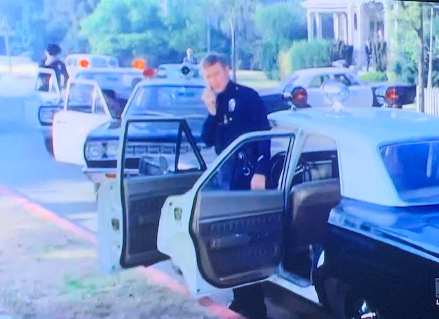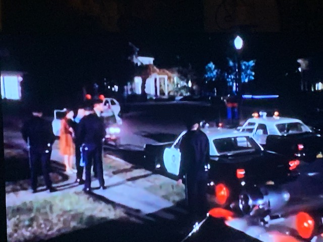 First, the Beaver House needed to be investigated, while the suspect ended up across from the Munsters’ residence. At this point, I’m all in. A potpourri of iconic film sets need police to secure it. This is better than my TV dinner. My mind races as the police search everywhere- my gosh, this could be me running from building to building. Before my long career, I trespassed here, I met Barbara Eden on this street in Harper Valley P.T.A.