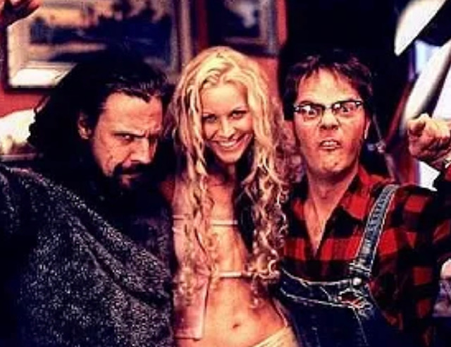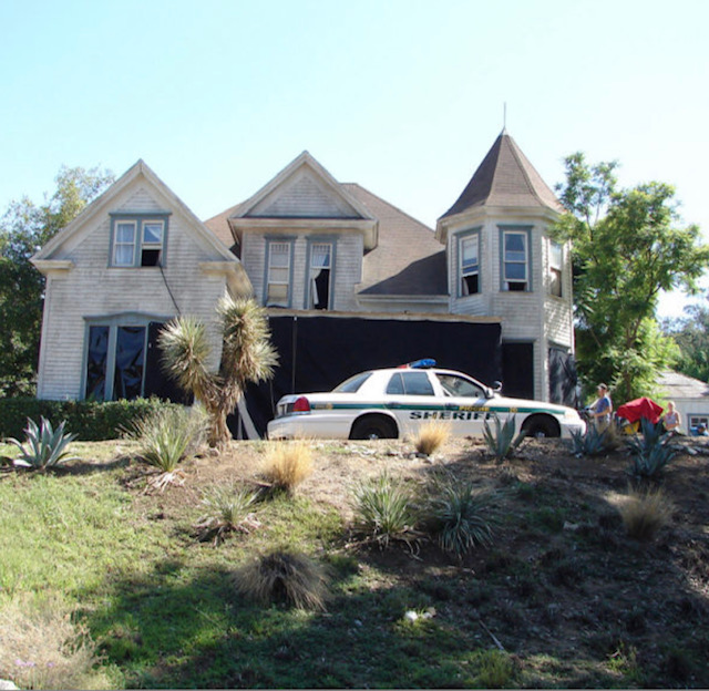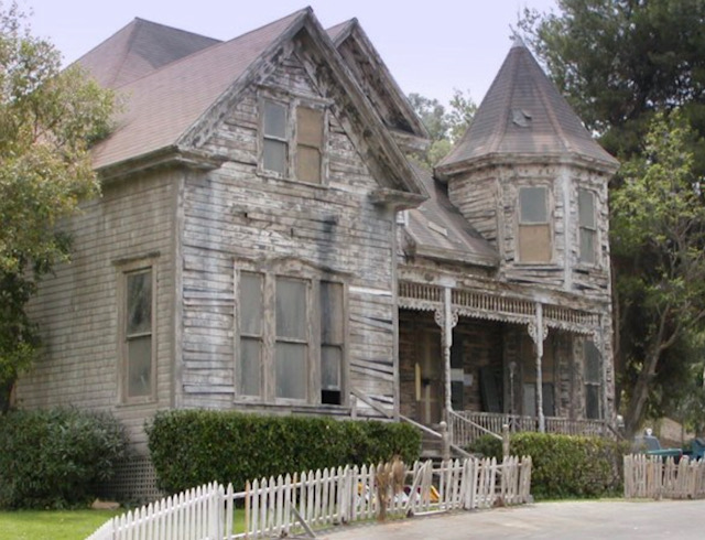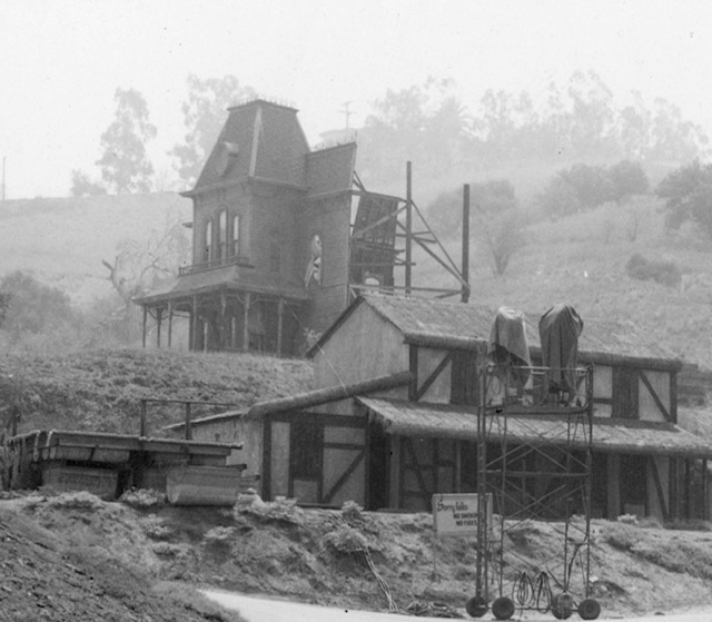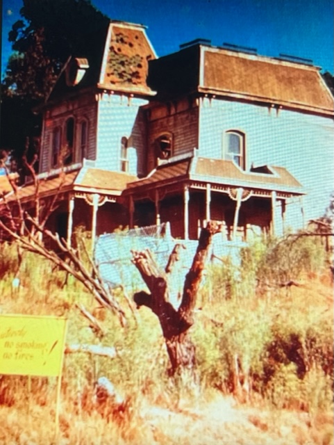The original location of Hitchcock’s classic- moved in 1982 for The Chicken Ranch.This area is an extreme fire risk, A “No Smoking” area. The fire department is investigating “something haunted,” most likely. Our featured House…Pictured in this Billboard.Green Acres is the place to be…A family dinner inside The Chicken Ranch.Rob and Sheri Moon Zombie…Just another successful Hollywood couple.They have such fun together. They would have enjoyed growing up with me.I often ran into stuff like this.Great family picture…this show was so gruesome, Universal would not produce it with their logo, it had an X- Rating, for it’s macabre content. But finally it got cut enough to be a hard- R.Rob giving direction to the sheriff. “nothing wrong going on here”“What a cool backlot-let’s explore!”-“Not afraid are ya ?”“Putting supper together- plenty to eat-make yourself at home!”“Your all a bunch of rejects“…Base camp was located on Elm Street for this group so these folk could be seen wondering around the backlot. Universal provided equipment and trailers, but our bottom end equipment. It was like a strange Film Academy. A show I can never forget. Michael J. Pollard- This is the kid you see on every rerun of great T.V. He was Virgil, Barney’s nephew in the Andy Griffith Show. He was also in Mayberry in Star Trek…Probably best known for his role in Bonnie and Clyde. He has a trespasser look, I always liked this kid, he has a grown up look. He was the second biggest name attached with this film. Fay Dunaway and Mr Pollard reunited again. Pretty cool…My daughter Christy, wearing safety gear for this adventure. She was a guest on the T.V series Providence, a Halloween episode. Inside this Chicken Ranch was a coffin brought in especially for this scene. It was close quarters inside this ranch set with make up and camera all stuffed at the base of the stairway. They put my daughter as close to the action as possible. The coffin was the focus, it opened slowly- an actor, playing a corpse, is standing in this upright coffin. As the lid squeaked open in this dimly lit room, the female star delivers her line to this corpse -“Is it night time already dear brother?”… The show got a sample of the reaction they were hoping to create, I wish we had that on film. They put Christy as the center of the Universe…