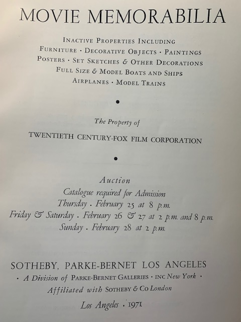 But the big two players, Fox and MGM, couldn’t dump stuff fast enough. Bring your checkbook. This is where adults become kids again. These sales were once in a lifetime and closed the curtain on how the studio system once worked.