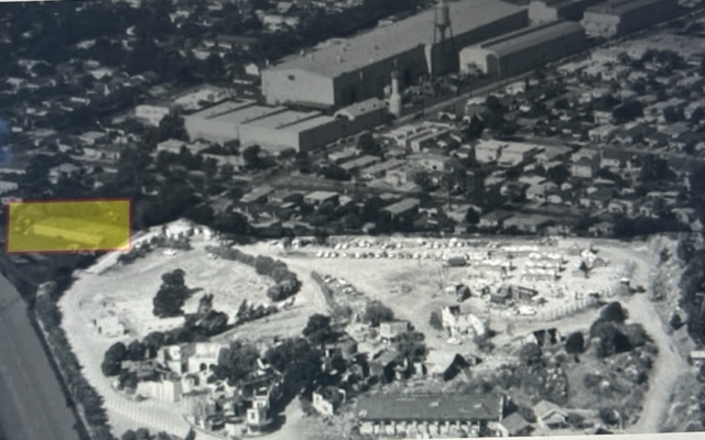 Welcome... A guard shack no longer exists just inside the chain link fence, it’s been replaced by an elevated industrial water tank to fill water trucks needed to help control blowing dirt. Yep, this lot is going, going, Gone With the Wind. Camp Henderson is the first missing set you notice and that hits you like a punch in the nose. To see this lot this barren, you would need to rewind over 50 years.