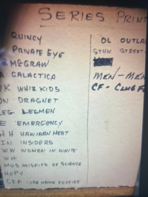 Other films on the rack besides Star Trek included a pilot called The Sheriff of Cochise. Westinghouse Desilu Theater, and some I Love Lucy cans along with The Whirlybirds. Paramount had labels on film cans in the dumpster.
