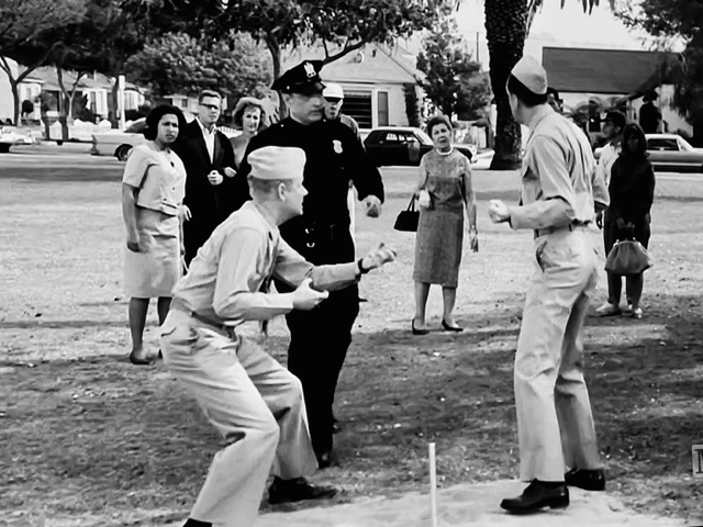 Even today you can stumble across The Goldbergs grabbing park scenes a short walk from Sony. As for this park, I attempted to match the Pyle scenes to their exact location 58 years later. The trees are much larger in the park, but the original palm trees still frame the outer edge.The center of the park has a stone, circular rose planter, or it was anyways. Now it’s got a stone art piece as the center replacing the roses. Hedges surrounding this centerpiece have been removed.The houses as you may expect have been modified or completely torn down for more opulent structures. This is considered an expensive area so remodels happen often. But the park itself has not changed hardly at all. It’s a park I grew up in and still frequent.