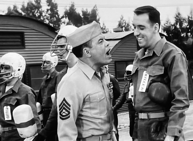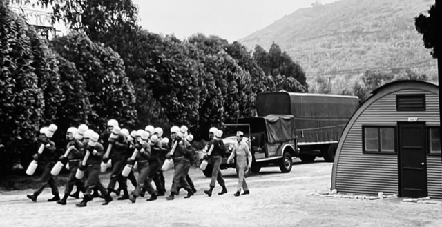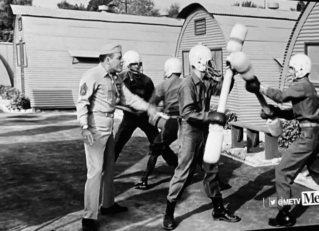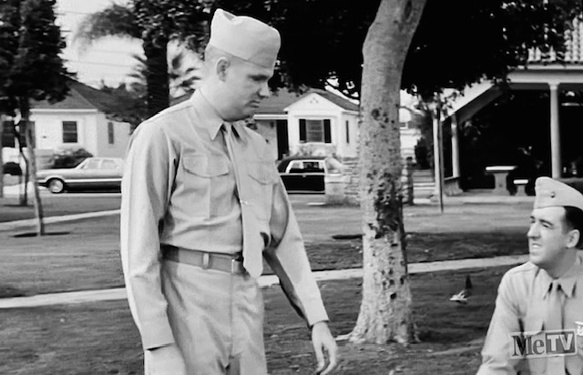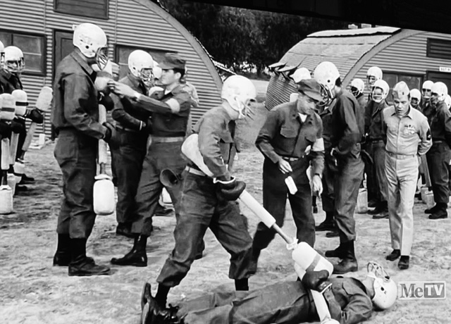 As our troops arrive for battle, notice that large 5 ton box truck parked behind that utility vehicle. It’s there to block the camera’s view of…Goober’s Gas Station, the official filling station of Camp Henderson. Those Pyles got quite a racket going on.