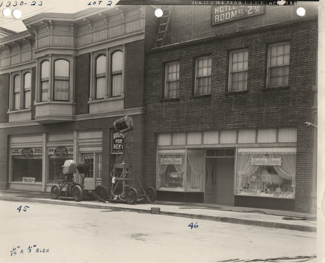 Company move–New York Street, MGM Lot 2. This building allows interior scenes to be utilized.