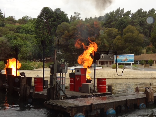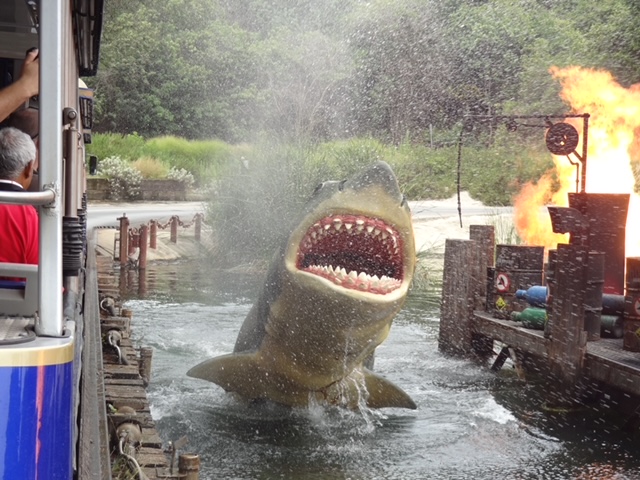 Cabot Cove, the dock entrance to experience the Shark Attack. It triggers through limit switches and a garage Genie opener sends signals to activate rides here. You too can trigger animations if you carry a genie in your purse, that would be a fun distraction. “I’m not triggering this, it’s the lady in the third row” she’s good!
