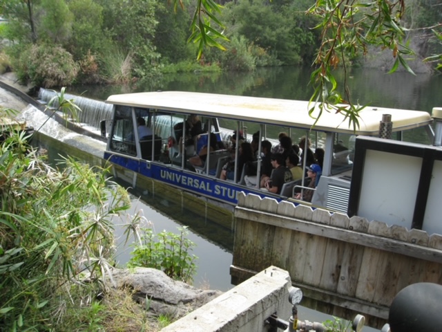 We continue into the front lot by where stage 41-44 our located, along with the shops and mill. We pass by Amblin Entertainment, then Alfred Hitchcock’s bungalow before cruising the backlot, after exploring New York Street and The Courthouse Square set used often in Leave It To Beaver, we work our way up a hill, first going over a bridge that creeks as you look at it. It is our Collapsing Bridge set built especially for tours but used in TV shows like The Six Million Dollar Man and WonderWoman.