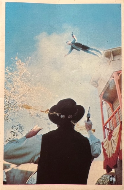 Yours truly-horsing around on the backlot in 6 Points Texas. As a kid, I did this all over the MGM backlot. Absolutely one of the funnest things to do on these old sets. At MGM, ammo from Combat was everywhere in the war torn villages.