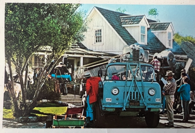 Preparing for an exterior shot, The camera man is on the boom of that old blue camera truck. Chapman cornered the market on more modern versions of this rig.
