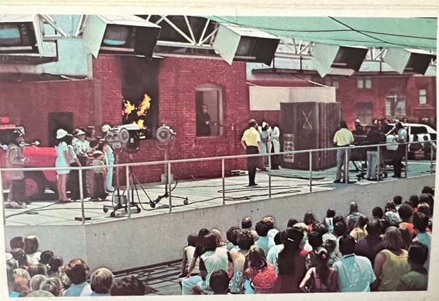 Visitors see themselves on color T.V monitors as guest stars in ADAM-12 and Emergency at “Stage 70”
