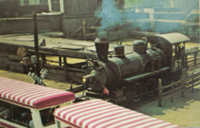You can see the train at the station on Denver street. The tracks use to run through this gap where this cart sits now. It backed into this spot alongside the old barn after each tram attack. It’s here, as a trespassing teen ager, I climbed into the engine as it sits waiting, and became the engineer for a few “can’t stop rides.” Like a train robber, this was where it happened. These tracks terminate behind Spartacus at a small depot, that can be disguised as the old west or Transylvania.