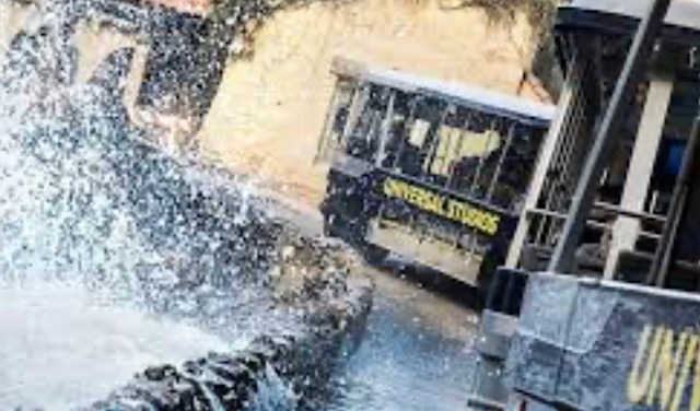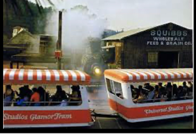 That’s afterwork stuff, but mornings, we shine brightly. Tour Guides and drivers get dispatched from different trailers and meet up on a fully loaded- ready to tour tram. A comfort level exists with certain flight crew members since we often unite after work. After a million brief safety rules, we begin our journey. Our first Que spot is behind The Universal Amphitheater, sometimes, on show nights, limousines pull up alongside red carpets to drop off artists and VIP’S for parties going on backstage. We wait here for clearance to proceed to BattleStar Galactica.