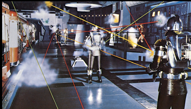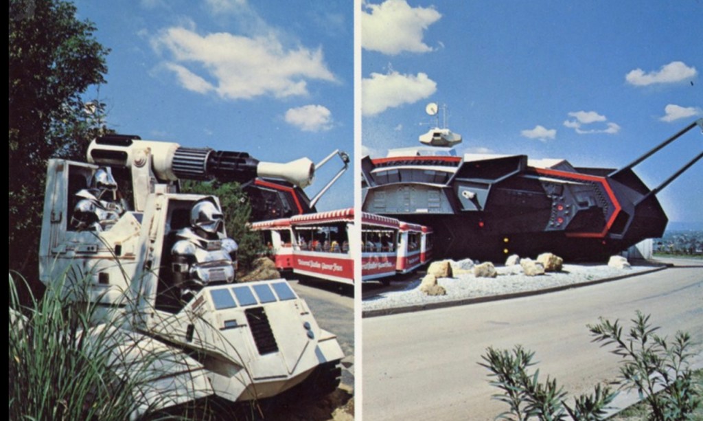 Once inside, this Laser Show takes place, kinda like Laserium at the Griffith Park Observatory, without the music. This concept was ahead of its time for tourism. This is one of the first Laser Shows anywhere. The Glamour Tram is part of the battle.