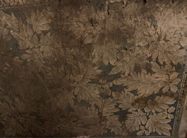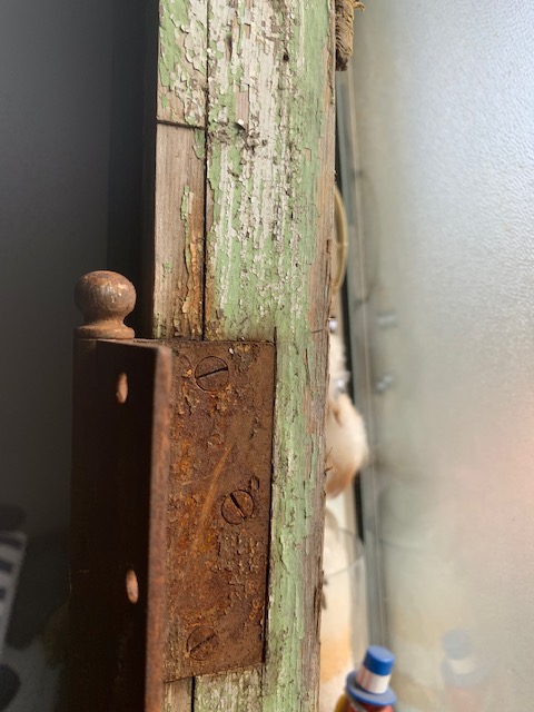 Research is indicating that this property was a studio compound for actors making films. Luxuries exist such as a Koi Pond, push button switches and glass door knobs are inside the home. These same luxuries existed in the make-up rooms that sat at the top of the stages used in classics such as Gone with the Wind. Room after room were lined up like an assembly line. The door handles were glass, push button switches, a mirror, a toilet, a place to sit or lay. Amazon tore all this down. These rooms no longer exist, but they did, similar to what exists on this corner. But the home attached to this room and koi pond are for Hollywood’s elite, when filming in this area. Once Opulent sliding stain glass doors sit covered yet discarded. Everything to do with this property has a lime green color attached. Even the door of this ancient Make -Up room has green tint.