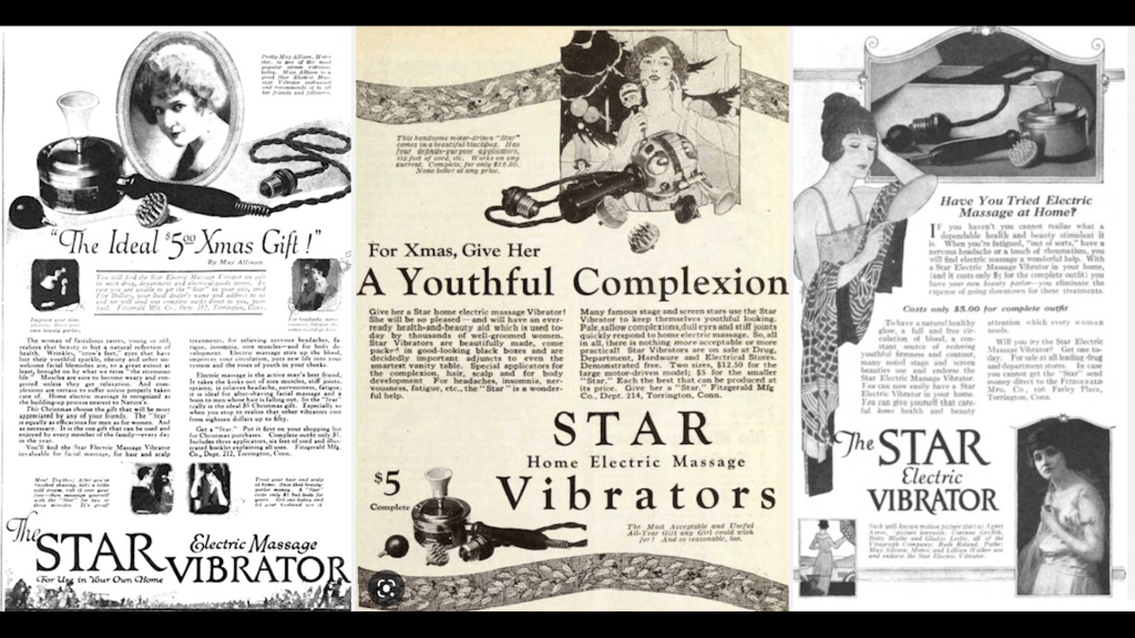 A camera dating to 1933. King Kong was made at RKO here in Culver City in 1933. Also in this picture is a Star Home Electric Massage Vibrator. The owners tell us Fay Wray once used this room for make-up.