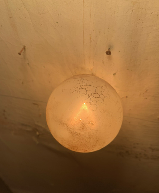 The porcelain fixture hung overhead the make- up chair.