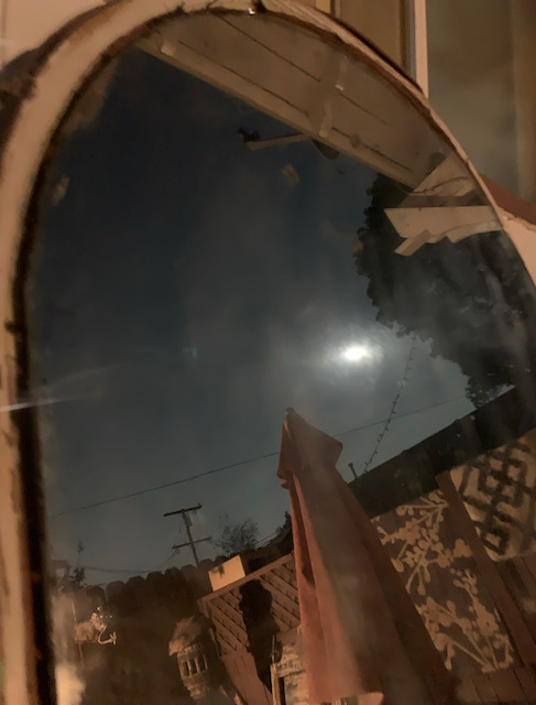 Mirror, mirror on wall…The top of the mirror winked at me to be save her, a lot of gardening supplies hid the the prize inside.