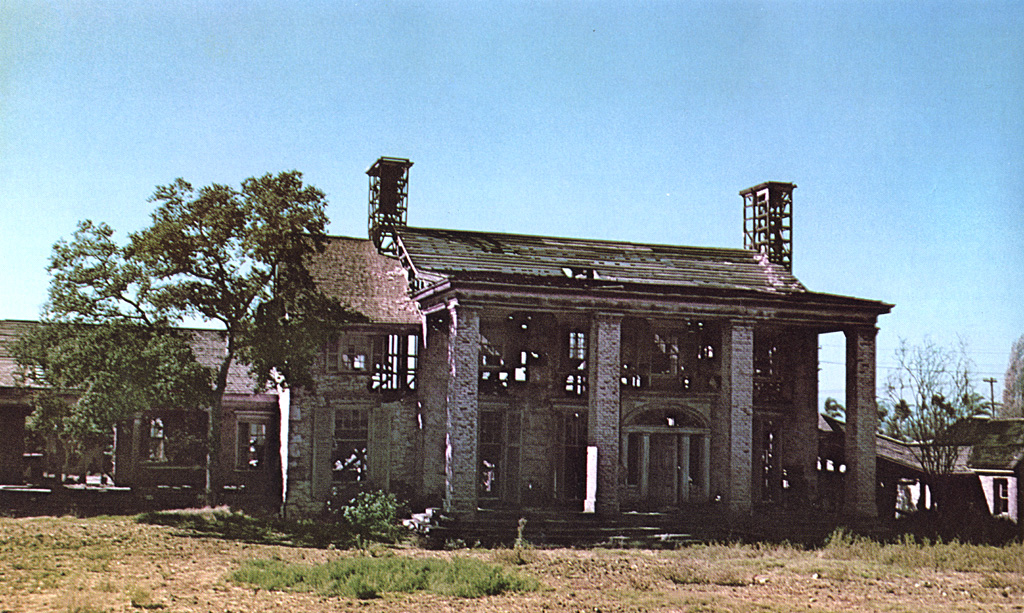 This wonderful photo shopped photo captures what this room was part of. The glass door was as close to this blaze as the horses and carriages. Animals and rodents of every kind hastily exited the backlot during the filming of this scene. I adore this picture just because of it’s realism to the events that took place here.
