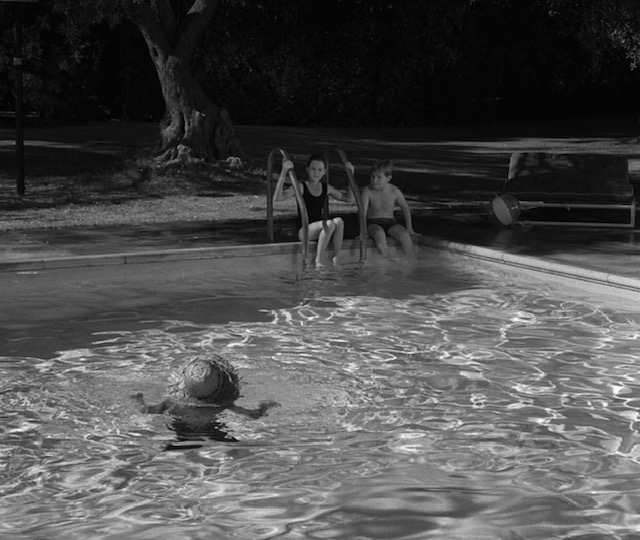 The pool and mansion from Twilight Zone episode The Bewitchin’ Pool. MGM Backlot #2. Directed by Joseph M. Newman, written by Earl Hamner Jr. This sadly was the series’ last episode…1964.