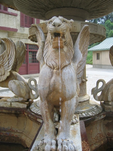 A family of three flying beasts inhabit this ancient relic. Water is pumped through copper tubes in their oral passageways.This fountain is large enough to put people inside the reservoir.