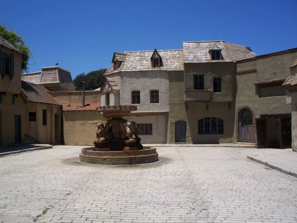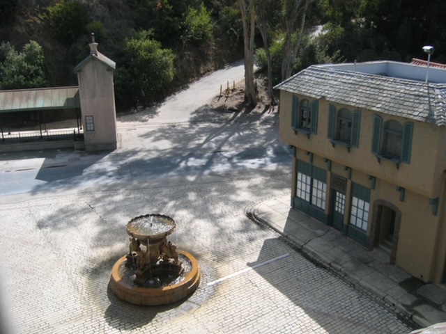 Here is the the fountain being stored over by The Spartacus set. We have a crane on the lot capable of moving this fountain to and from. The base is separate from the lions that will be inserted inside when next in use.
