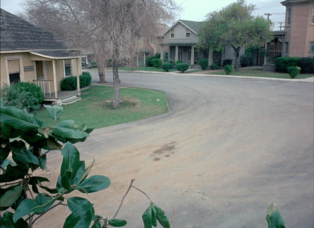 The view from Andy Griffith’s porch. A movie company arrives in Mayberry on a scout. The porch and upstairs windows look out toward that “real” yellow house, the church-where the picket fence stands, and the Baldwin Hills Scenic Overlook. The Stairs, as it is called now, will take you above the backlot like a balcony at a theater. You could watch this show filmed from there without ever having to trespass into Desilu.
