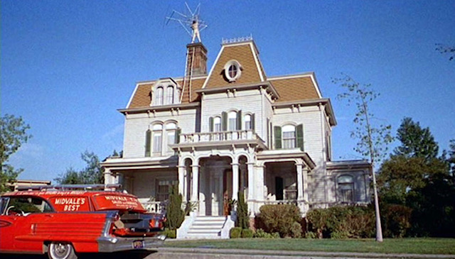 This is such a great street and a challenge not to complete the obvious, every home is recognizable. But Mayfield probably doesn’t work in Adam-12. The Munsters Home is the neighbor on the left side of the picture.