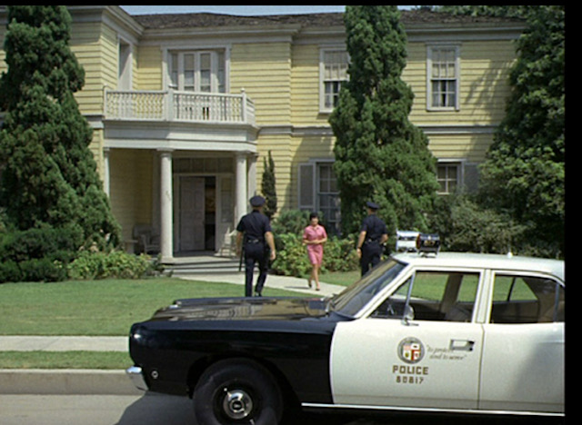 The exterior of this Chinese Restaurant is located on… Universal’s Backlot. We need to follow up on a lead: A high number of explosives are in the possession of a radical individual. Luckily, the culprit lives very close to the studio. Up in the Hollywood Hills, where several television and film stars reside. Pete Duel and Lindsay Wagner live close to work in their tiny mansions nestled up alongside these curvy roads that barely fit one car alongside each other.