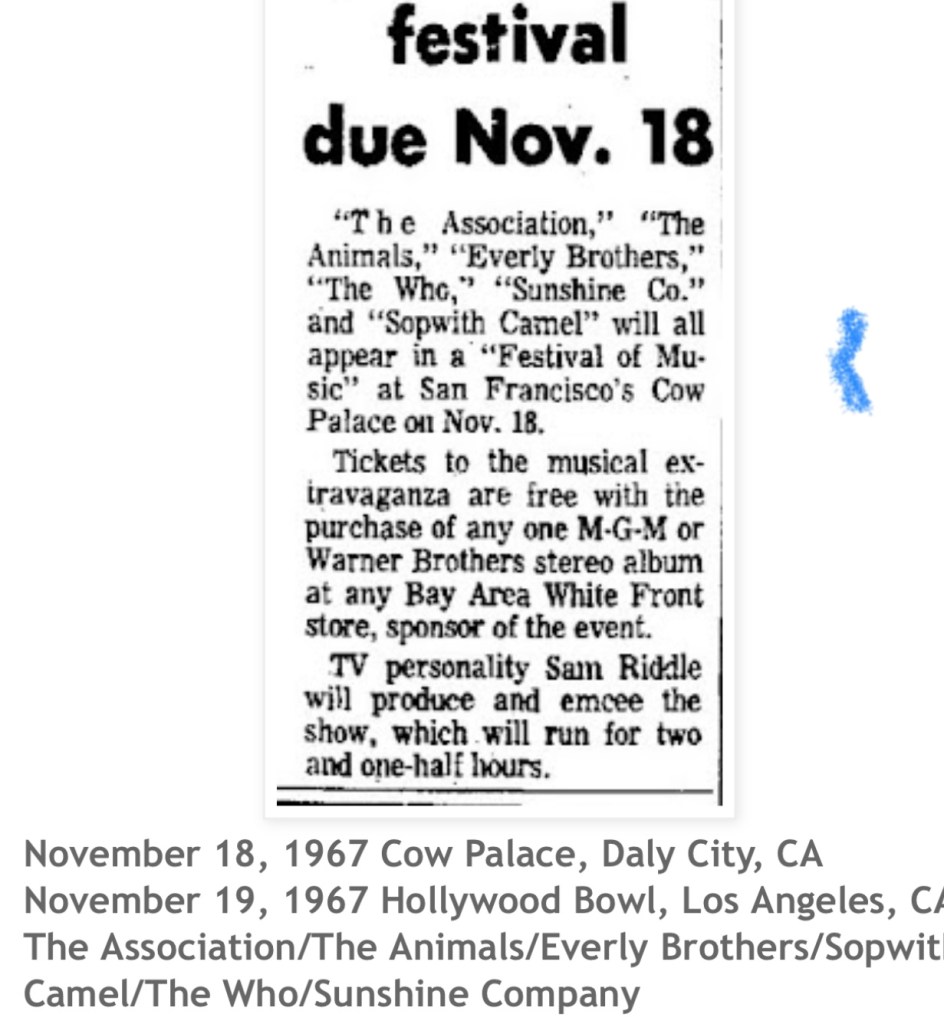 This type of Rock and Roll requires…Law Enforcement. Activities in and around L.A in 1967, located near the Cahuenga Pass. A bus ride from The Cow Palace down the 101 will put you in Hollywood in roughly 5 hours.